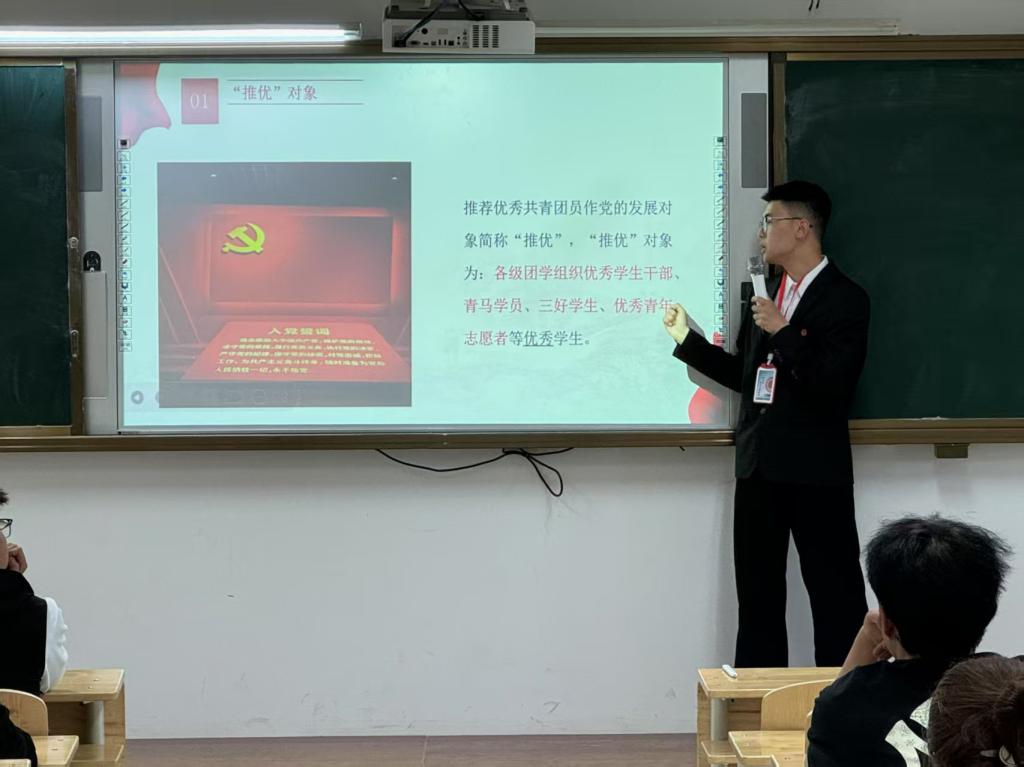 团总支副书记张敬波详细解读了《呼和浩特职业学院共青团推优入党工作制度》,从推优对象的基本条件、具体条件到推优范围,再到“推优入党”工作的详细程序,都进行了深入剖析。推优对象需年满18周岁、具有一年以上团龄且已向党组织递交入党申请书,在政治思想、道德品行、发挥作用、执行纪律等方面都要符合一定标准。在推优程序上,从团支部大会的召开,到团支部委员会的考察,再到公示、上报等环节,都明确了具体要求和操作规范。