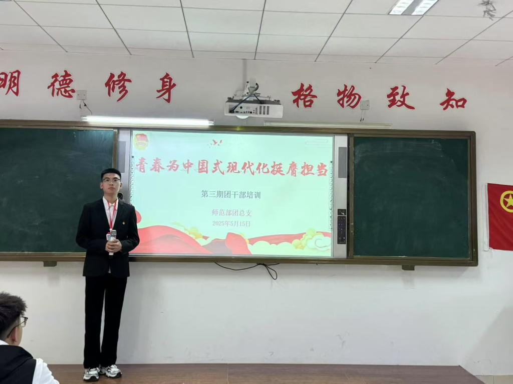 为提升团干部的政治素养与业务能力,扎实推进共青团工作,2025年5月16日,师范部团总支开展“青春为中国式现代化挺膺担当”第三期团干部培训,重点学习了《呼和浩特职业学院共青团推优入党工作制度》。