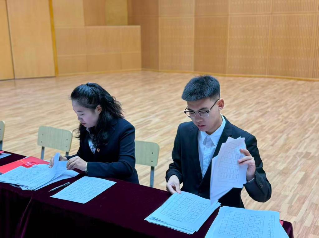 第四届团总支学生干部竞选环节将大会推向高潮。候选人通过演讲展示个人规划与工作理念,经民主投票、监票员张敬波同学和计票员侯佳慧同学的监督审核下,最终选举产生新一届师范部团总支学生干部。师范部党总支书记杨丽在闭幕词中寄语新学生干部:“要当好青年思想的‘引路人’、青年成长的‘铺路石’,以实际行动践行‘请党放心,强国有我’的青春誓言。”