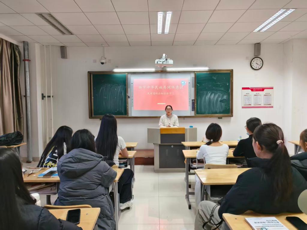为深入推进民族团结进步教育,铸牢中华民族共同体意识,教育学院团总支于2025年12月11日开展了“铸牢中华民族共同体意识——民族团结应知应会”专题学习活动,团总支焦慧焱老师担任主讲,为团员青年带来了一堂深刻且生动的思政课。