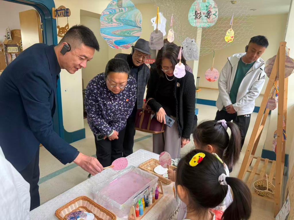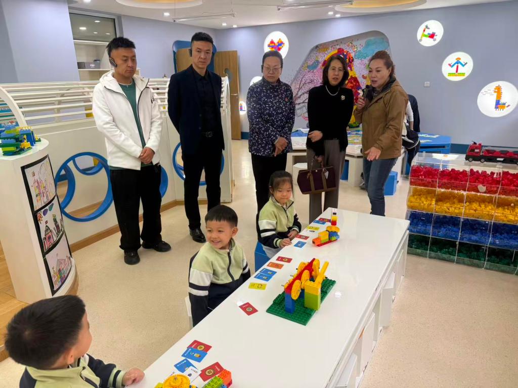 在葛根格日勒园长的带领下,师范部一行首先参观了幼儿园的各个功能区域。从充满童趣的教室布置,到设施完备的活动场地,再到温馨舒适的休息区域,每一处都体现了幼儿园对幼儿成长环境的精心打造。园内依托十大专用功能室,开展体验式教学,培养幼儿探索、体验,发现问题、解决问题的初步意识,创造性开展联动式廊道文化公共区域主题游戏。从三楼“四雅”传统文化公共区域发展为全楼层联动的公共区域游戏,各楼层精选不同主题,即一楼科技强国、二楼民族团结、三楼中华民族传统文化,将爱国主义教育、铸牢中华民族共同体意识教育、民族团结教育寓于游戏、教育之中。