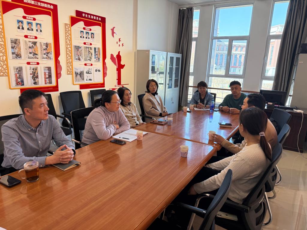 3月26日下午,蓝海众浪文化科技集团有限公司教育投资中心负责人秦立栋一行莅临教育学院,开展校企合作交流活动。教育学院书记杨丽,主任李江南,副主任杨淑英、卢富强,招生就业科科长王泽敏、科员单宇欣,舞蹈教研室主任阿斯茹出席座谈会并陪同参观。