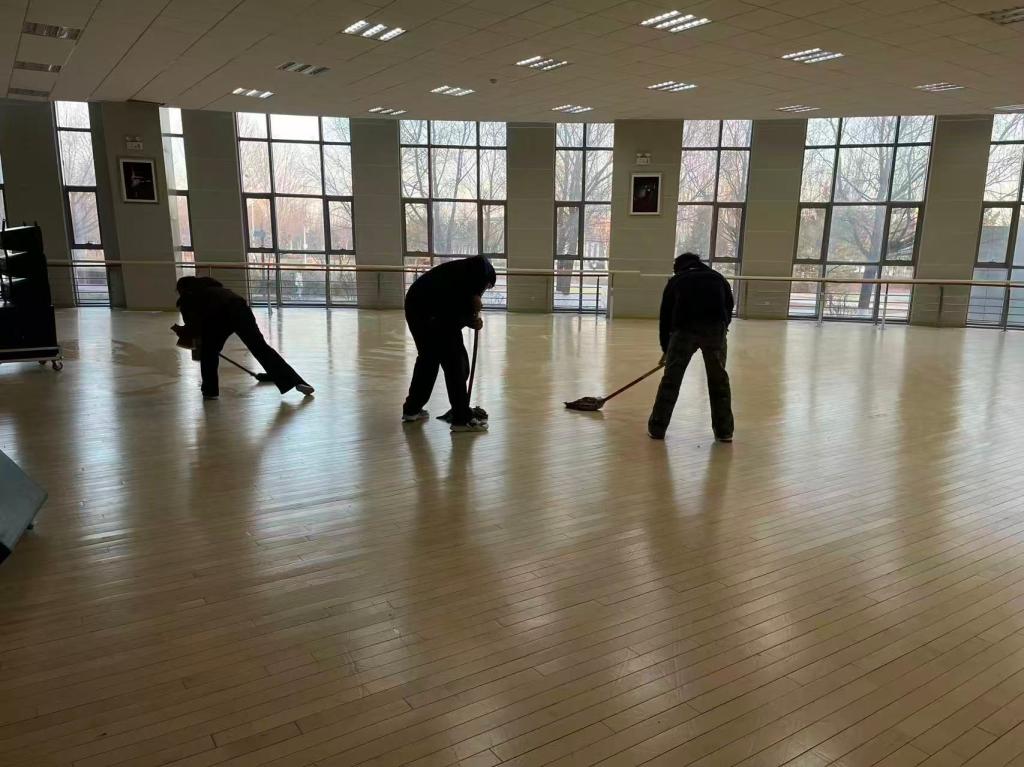 活动期间,志愿者们分工明确、协作有序,对教学楼周围、舞蹈教室、公共教室以及琴房等区域展开了全面且细致的清扫。在教学楼周围,他们手持扫帚、垃圾袋等工具,认真清扫着路面上的落叶、纸屑和杂物,不放过任何一个卫生死角,让教学楼周边环境焕然一新。舞蹈教室和公共教室里,志愿者们仔细擦拭着桌椅、门窗,整理着教学用具,将原本有些杂乱的空间整理得井井有条。琴房中,他们小心翼翼地擦拭钢琴表面,清扫地面灰尘,为同学们营造了一个干净整洁的练琴环境。