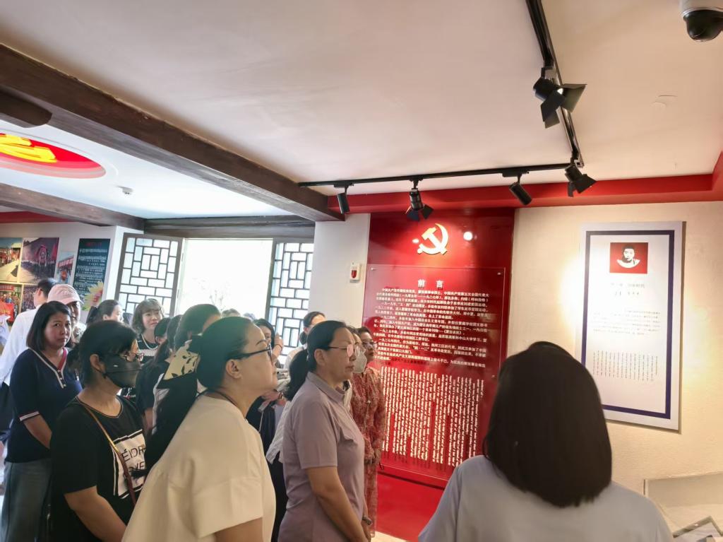在讲解员的引导下,党员教师依次参观多松年烈士故居及事迹陈列馆。事迹陈列馆,20余件珍贵文物在灯光下散发着历史的光辉,80余幅历史照片将多松年烈士的一生定格。学员们围在展柜前,仔细端详着烈士用过的钢笔、笔记本,想象着他挑灯夜读、奋笔疾书的场景。党员教师凝视着多松年烈士英勇就义前的画像,神情肃穆,心中涌起对革命先辈的无限敬仰。大家时而轻声交流,时而陷入沉思,在历史的长河中追寻着烈士的足迹,深刻领悟着革命精神的内涵,红色基因在这一刻深深烙印在每个人的心中。