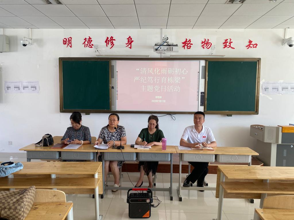 2025年7月17日上午,师范部于敏学楼127教室召开“清风化雨砺初心 严纪笃行育栋梁”主题党日活动,党总支书记杨丽主持本次主题党日活动,师范部全体教师参加。此次活动旨在深入学习习近平总书记重要讲话精神,加强党的作风建设,提升广大党员领导干部的政治素养与责任意识。