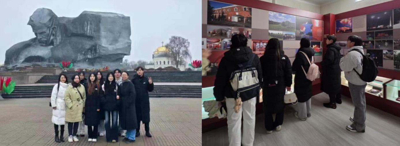 文化交流与情感联结贯穿访问全程。曾来我校任教的外籍教师娜塔莉娅带领实践团参观了“别洛韦日森林”国家森林公园,师生们沉浸式感受白俄罗斯优美的自然生态与独特的人文风情。在布列斯特要塞,实践团走进这座“英雄要塞”历史遗址,重温二战时期苏军将士浴血坚守的壮烈史实。展厅内,2024年中国人民抗日战争纪念馆与布列斯特要塞纪念馆联合推出的专题展览展区引人注目,珍贵史料既再现了要塞百年发展与保卫战历程,更彰显了中白两国在文化遗产保护与历史研究领域的合作足迹。师生们在参观中深切感悟两国人民铭记历史、珍视和平的共同追求,体会到中白友谊历久弥坚的深厚底蕴,进一步激发了传承友好情谊的责任感。