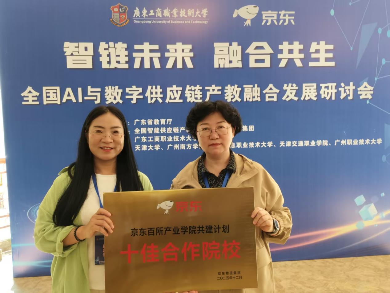 近日,由行业龙头企业与全国百余所院校共同参与的“智链未来 融合共生——全国AI与数智供应链产教融合发展研讨会”在广东工商职业技术大学隆重举行。会议聚焦人工智能与数字化供应链前沿趋势,深入探讨产教融合新路径,并隆重表彰了在合作中涌现出的先进典型。其中,呼和浩特职业技术大学凭借与京东集团的深度合作成果,一举荣获“京东产业学院十佳合作单位”称号,包春玲老师同时荣获“京东产教融合教学名师”奖项,成为本次研讨会上的亮点。