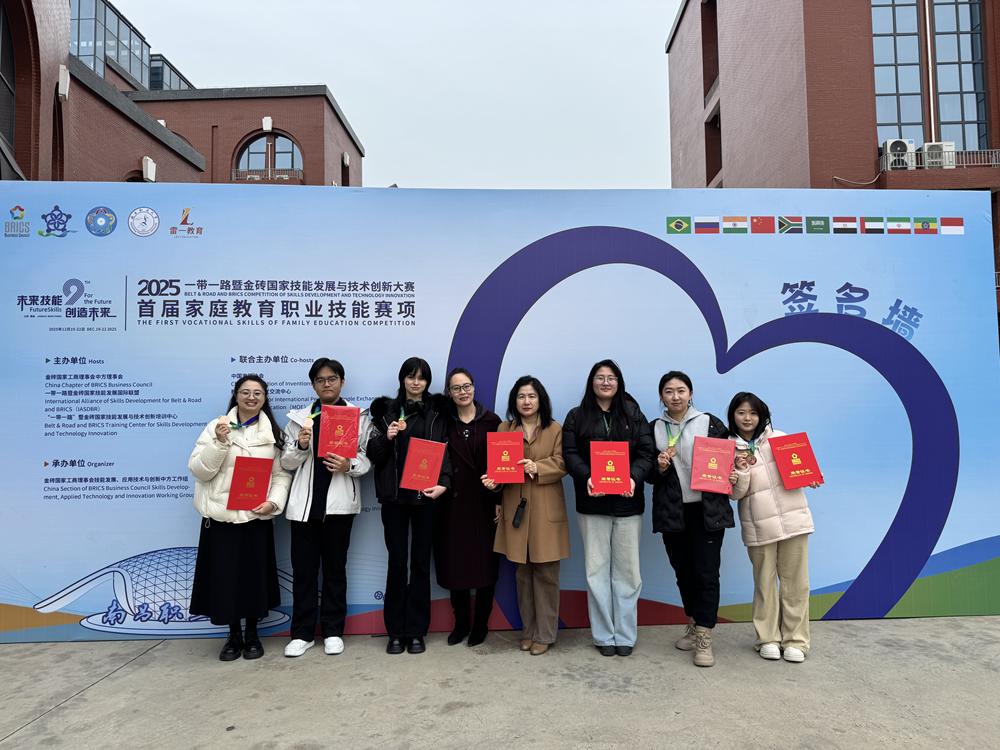 2025年12月22日,2025“一带一路”暨金砖国家技能发展与技术创新大赛——首届家庭教育职业技能赛项决赛在江西南昌职业大学圆满收官。本次赛事中,国际教育学院在国际组与教师组双线参赛中均取得突破性成果,展现了职业教育国际化发展的创新实践。