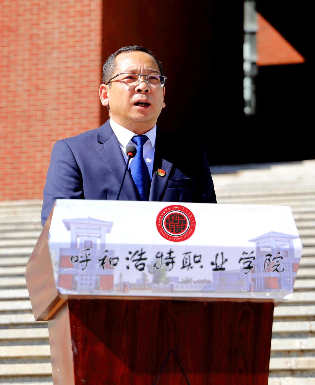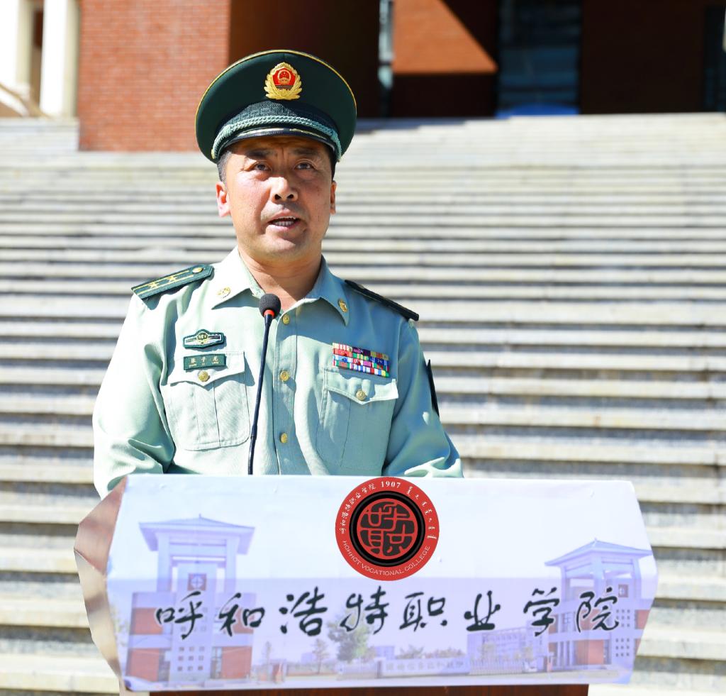 9月12日上午,呼和浩特职业学院在明德广场举行2023级新生开学典礼暨军训动员大会。武警内蒙古总队机动支队中校副支队长张子龙、机动支队少校大队长王艳波,学院党委书记曹红,党委副书记、院长张玉柱,党委委员、副院长嘎日迪,党委委员、副院长李占岭,党委委员、纪委书记田文阁,党委委员、副院长陈一,党委委员、党政办公室主任张瑞斌、宣传统战部部长刘惠华、人事处处长冀文军、组织部部长黄伟,教务处临时负责人王凤英,学生工作处(武装部)处长魏好毕斯,学院相关处室负责人、各系(部)党总支(支部)书记、主任,学团工作人员,新生辅导员及2023级全体学生参加了大会。大会由黄伟同志主持。
