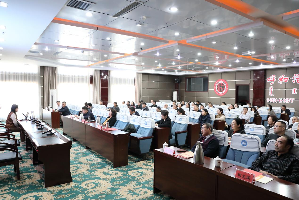 为落实《内蒙古自治区铸牢中华民族共同体意识研究(培育)基地周期考核评价指标体系》,推动内蒙古自治区铸牢中华民族共同体意识培育基地(呼和浩特职业技术大学)的研究工作高质量发展。为学校乃至自治区落实“铸牢中华民族共同体意识是民族地区各项工作主线”贡献智力支撑。11月18日,内蒙古自治区铸牢中华民族共同体意识培育基地(呼和浩特职业技术大学)学术报告会在明德楼5号会议室召开。会议由学校党委副书记、基地副主任白海林主持。学校党委委员、校领导;内蒙古自治区铸牢中华民族共同体意识培育基地(呼和浩特职业技术大学)组织机构成员;各部门党总支(支部)书记、二级学院院长;培育基地拟聘任研究员;马克思主义学院中华民族共同体概论课任课教师参加会议。