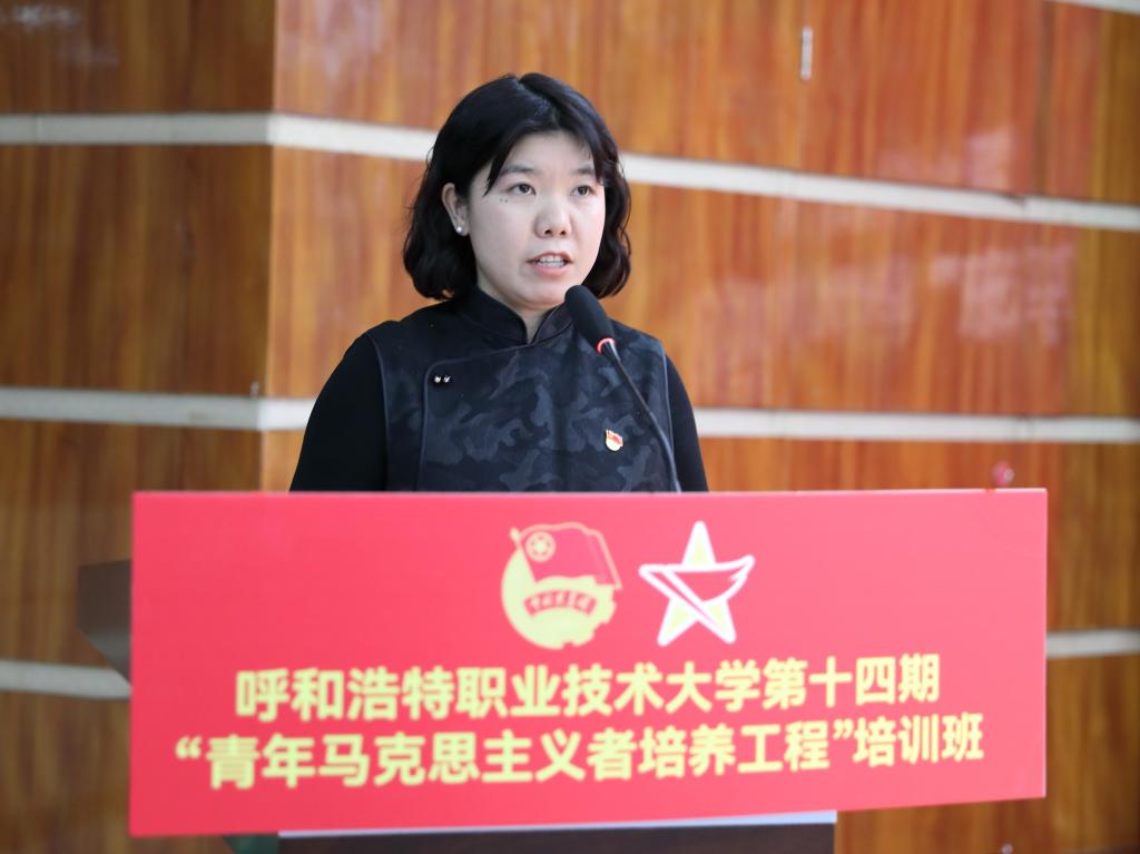 在全校深入学习贯彻党的二十届四中全会精神,全力落实习近平总书记交给内蒙古的五大任务和全方位建设“模范自治区”两件大事的重要阶段,为深学笃行习近平总书记关于青年工作的重要思想、落地落细团十九大精神,11月18日下午,呼和浩特职业技术大学第十四期“青年马克思主义者培养工程”培训班开班仪式在明德楼一号会议室举行。