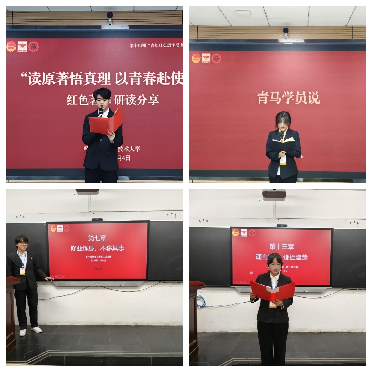 分享会聚焦红色经典研读、优良家风传承等核心内容,通过原著精读、心得交流、主题热议等形式,引导学员从经典著作中感悟马克思主义真理力量,从优秀家风中汲取修身立德智慧。在“青马学员说”环节,学员们结合阅读体会畅谈理想信念与时代责任,分享将个人追求融入国家发展大局的思考,展现出扎实的理论素养与昂扬的青春担当。