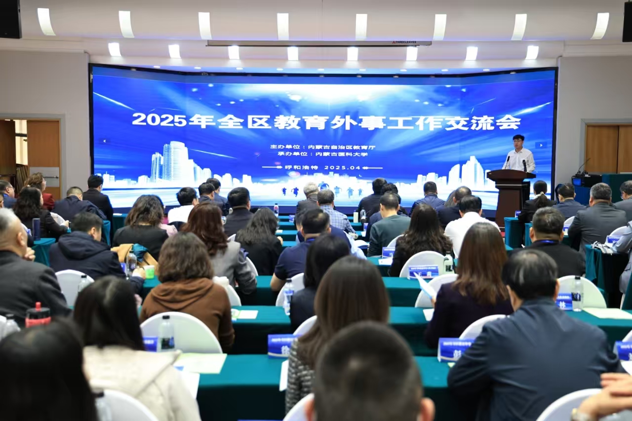 为深入贯彻落实教育强国建设规划纲要和加快建设教育强区意见,大力实施“区域合作深化行动”,提升全区教育外事工作水平,全区教育外事工作交流会于4月2日在呼和浩特市召开。会议由内蒙古自治区教育厅主办,内蒙古医科大学承办,全区各高校及盟市教育部门代表参会。学院党委副书记、院长杨乌日吐、国际教育部主任杨丛林全程出席会议,上午在主会场参加现场会议并参与交流研讨,下午在学院敏学楼310智慧教室与拟出国留学学生观看“2025年‘留学新征程 平安伴你行’主题活动(内蒙古专场)”线上直播,共同学习留学安全知识。