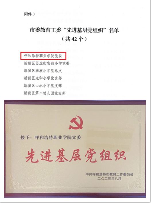 近日,呼和浩特市委教育工委对全市教育系统优秀共产党员、优秀党务工作者和先进基层党组织进行了通报表彰,我院党委被光荣授予呼和浩特市委教育工委先进基层党组织荣誉称号。李占岭、陈一、张瑞斌、冀文军、康利平、张婧、朝鲁、马小飞等同志被评为市委教育工委“优秀共产党员”;田文阁、刘惠华、黄伟等同志被评为市委教育工委“优秀党务工作者”。