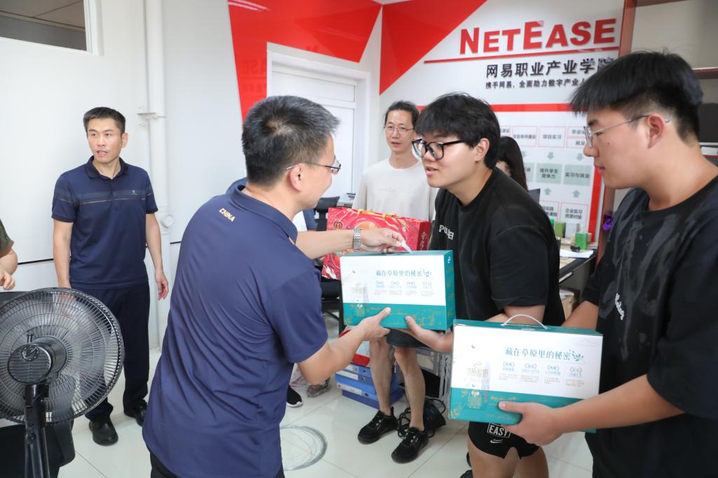 为切实做好暑期在岗教职工关爱工作,8月5日,学院党委书记曹红,党委副书记、院长杨乌日吐,党委委员、副院长陈一,党委委员、党政办公室主任张瑞斌,宣传统战部部长刘惠华,工会主席隋文红等深入校园一线,看望慰问暑期坚守岗位的教职工代表及相关系部参赛教师,并送上防暑降温慰问品。