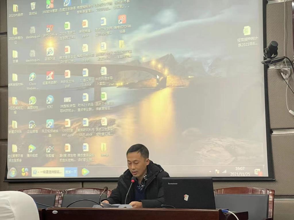 为深入学习贯彻党的十九届六中全会精神,2021年11月25日下午,医药卫生系在明德楼5号会议室开展了“百年奋斗 再启新程——学习贯彻党的十九届六中全会精神”主题党日活动。活动邀请民主党派和全体教师参加,特邀马列部杨永利老师专题宣讲六中全会精神。