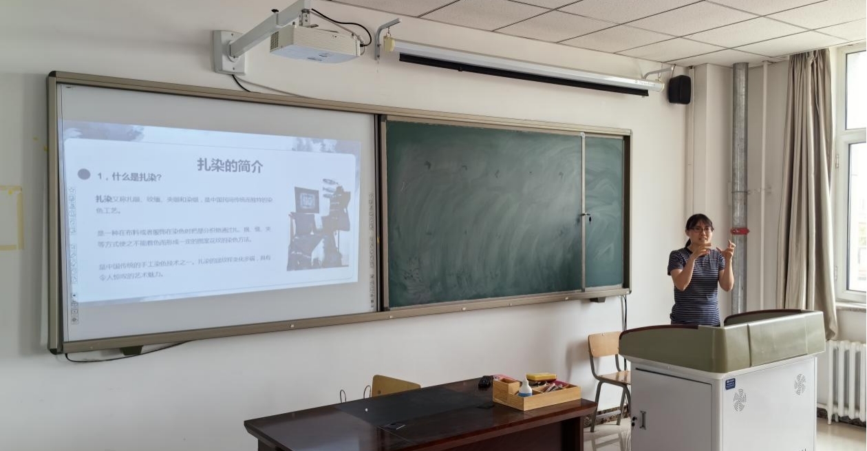 卢晶老师详细地讲解了扎染的起源、特点、制作步骤等内容。在活动过程中,大家亲自动手体验扎染制作,浸湿、捆扎、折叠、缠绕、浸染、清洗等一系列的操作后,创作出了丰富多样的扎染纹样。