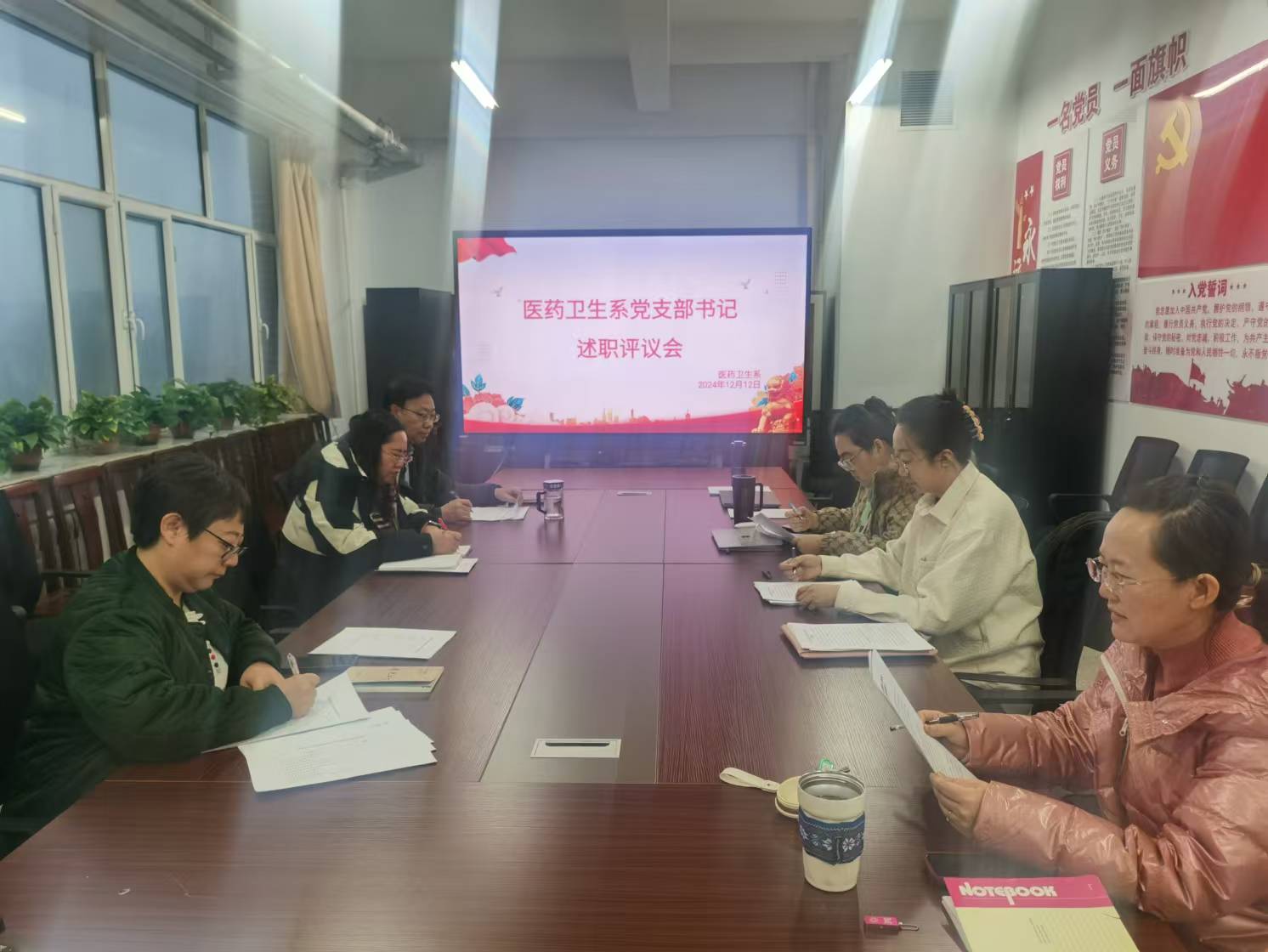 按照《呼和浩特职业学院关于开展2024年度党组织书记抓基层党建述职评议考核工作暨党组织书记落实全面从严治党主体责任情况汇报会议的通知》要求,医药卫生系于2024年12月12日在致知楼437会议室,召开2024年度党支部书记党建述职汇报会。系班子成员、四位支部书记参加了本次会议。