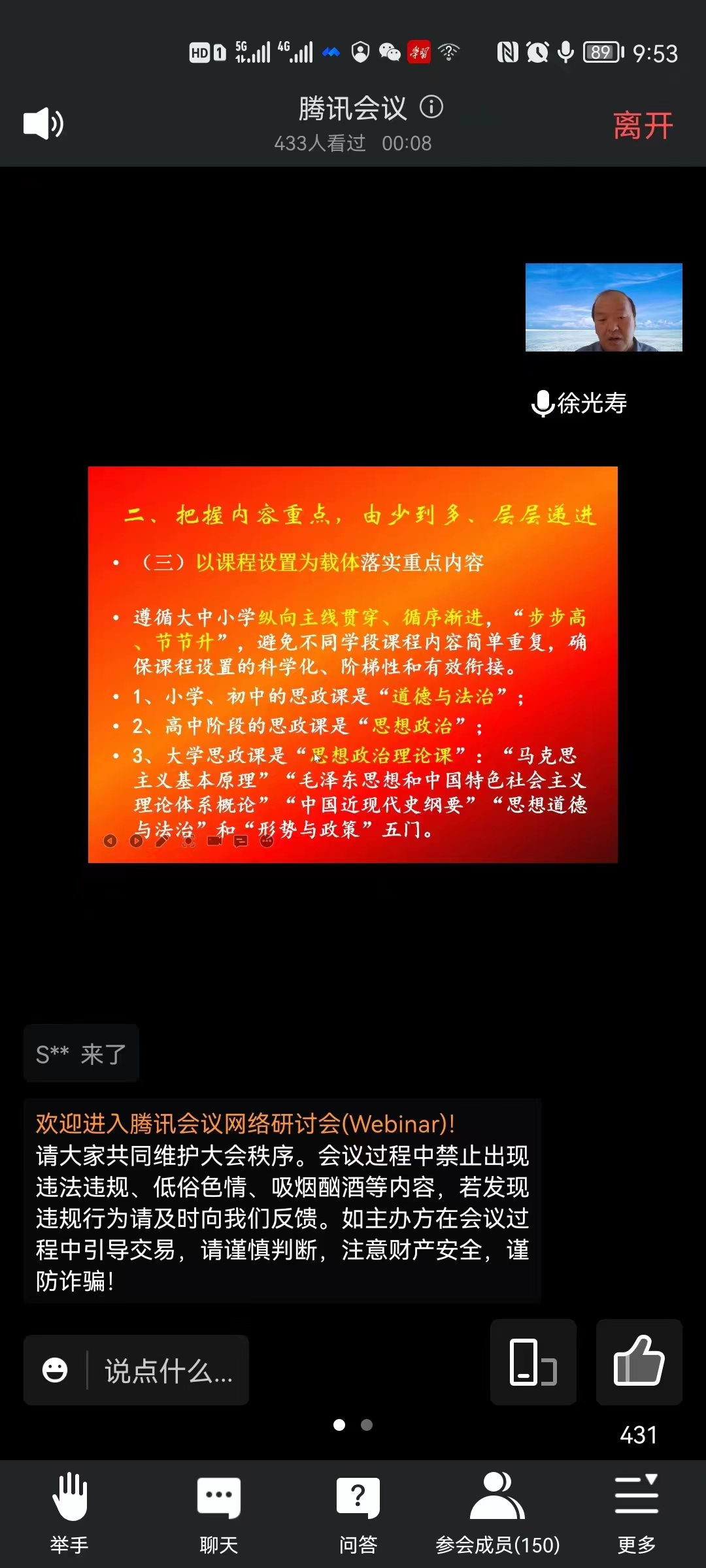 通过本次线上学习交流,广大教职工表示,将中国共产党的百年奋斗历史经验和伟大建党精神贯彻在教育教学中,实现丰富教学内容、传承理想信念、提升学生政治核心素养的目的。