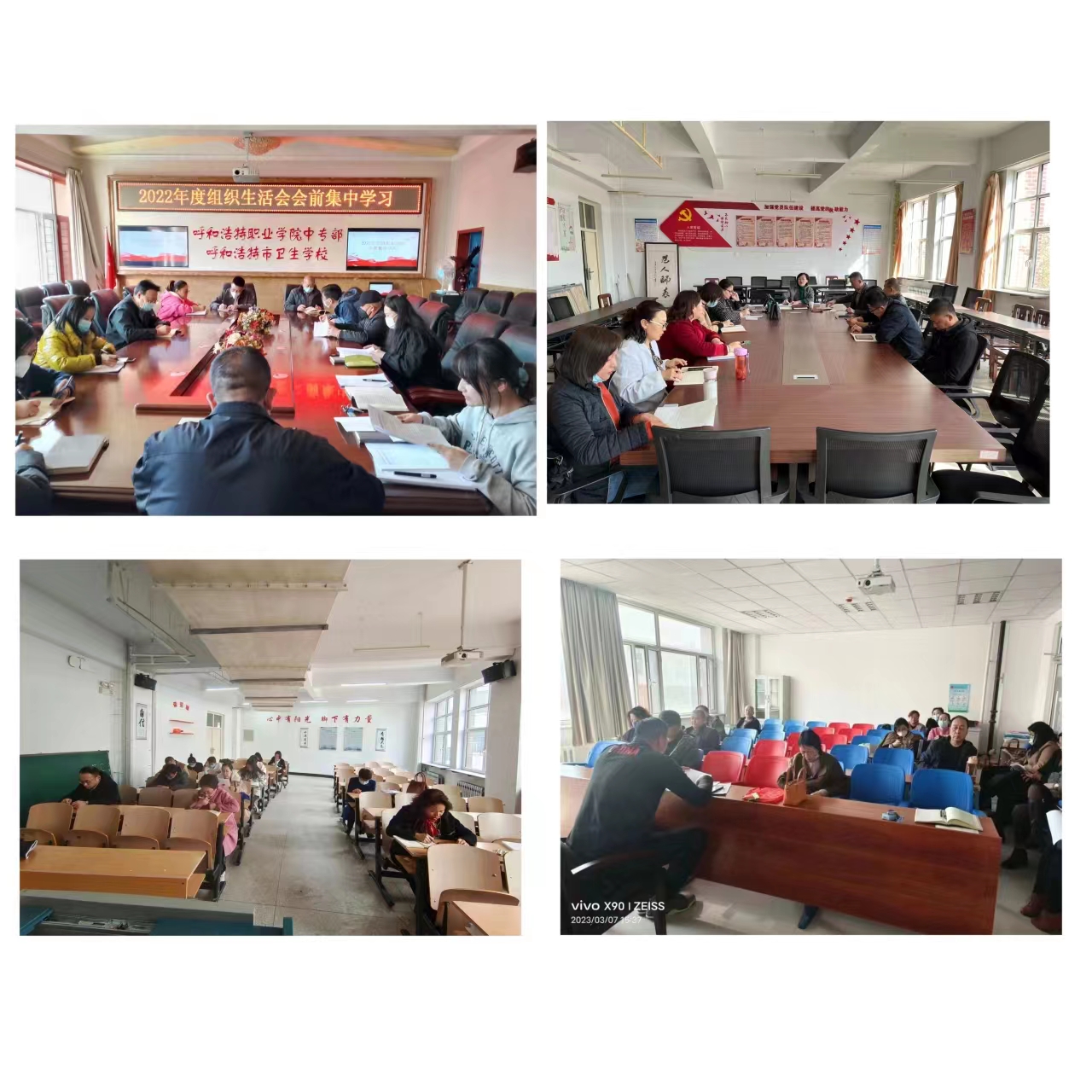 为高质量做好2022年度组织生活会和民主评议党员工作,医药卫生系党总支于3月7日下午,在致知楼和中职部同时组织2022年度组织生活会会前学习。医药卫生系全体党员参加会议,各支部书记主持会议。