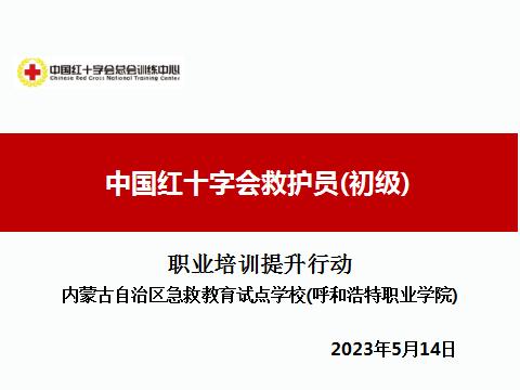 为深入贯彻落实内蒙古自治区第十四届人民代表大会第一次会议《政府工作报告》提出的“组织职业院校对就业困难等人群免费培训10万人次”的重点任务,按照《内蒙古自治区教育厅关于开展职业培训提升行动的通知》要求,5月15日医药卫生系组织开展第一期职业培训提升行动暨中国红十字会救护员(初级)培训班。