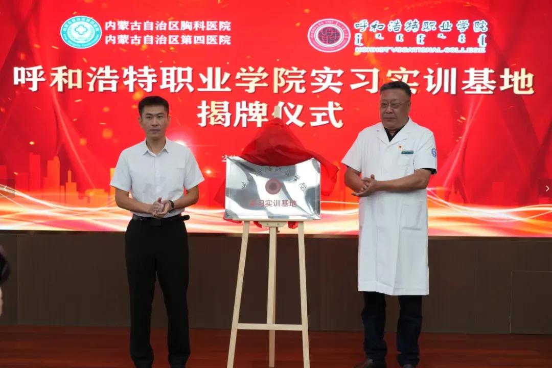 2024年7月8日上午,呼和浩特职业学院与内蒙古自治区第四医院(胸科医院)实习实训基地揭牌仪式,在内蒙古自治区第四医院(胸科医院)呼吸与心脏医学中心报告厅隆重举行。呼和浩特职业学院实习实训基地正式在该院挂牌成立,标志着双方在医学教育与医疗卫生服务领域的合作进入了一个崭新的阶段。