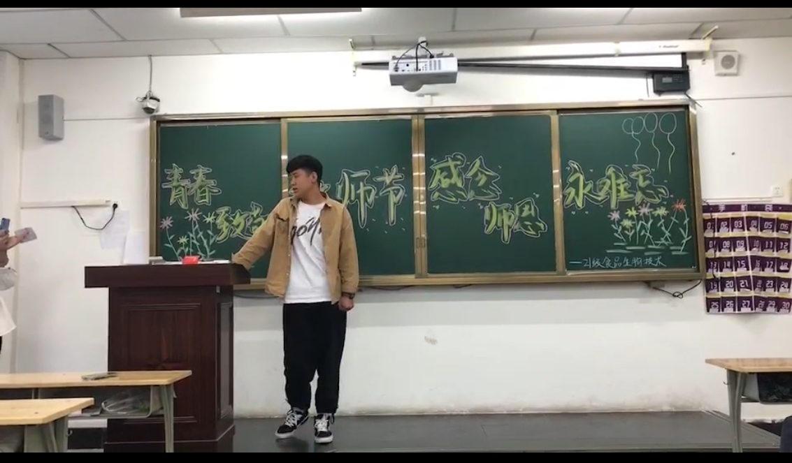 医药卫生系团总支组织各专业学生于教师节期间开展了“青春致敬教师节,感念师恩永难忘”主题活动。教师节当天,2021级新生在教室里为她们亲爱的老师表演了丰富多彩的节目,献上节日的祝福,上网课的同学线上也向老师隔空“投递”祝福。