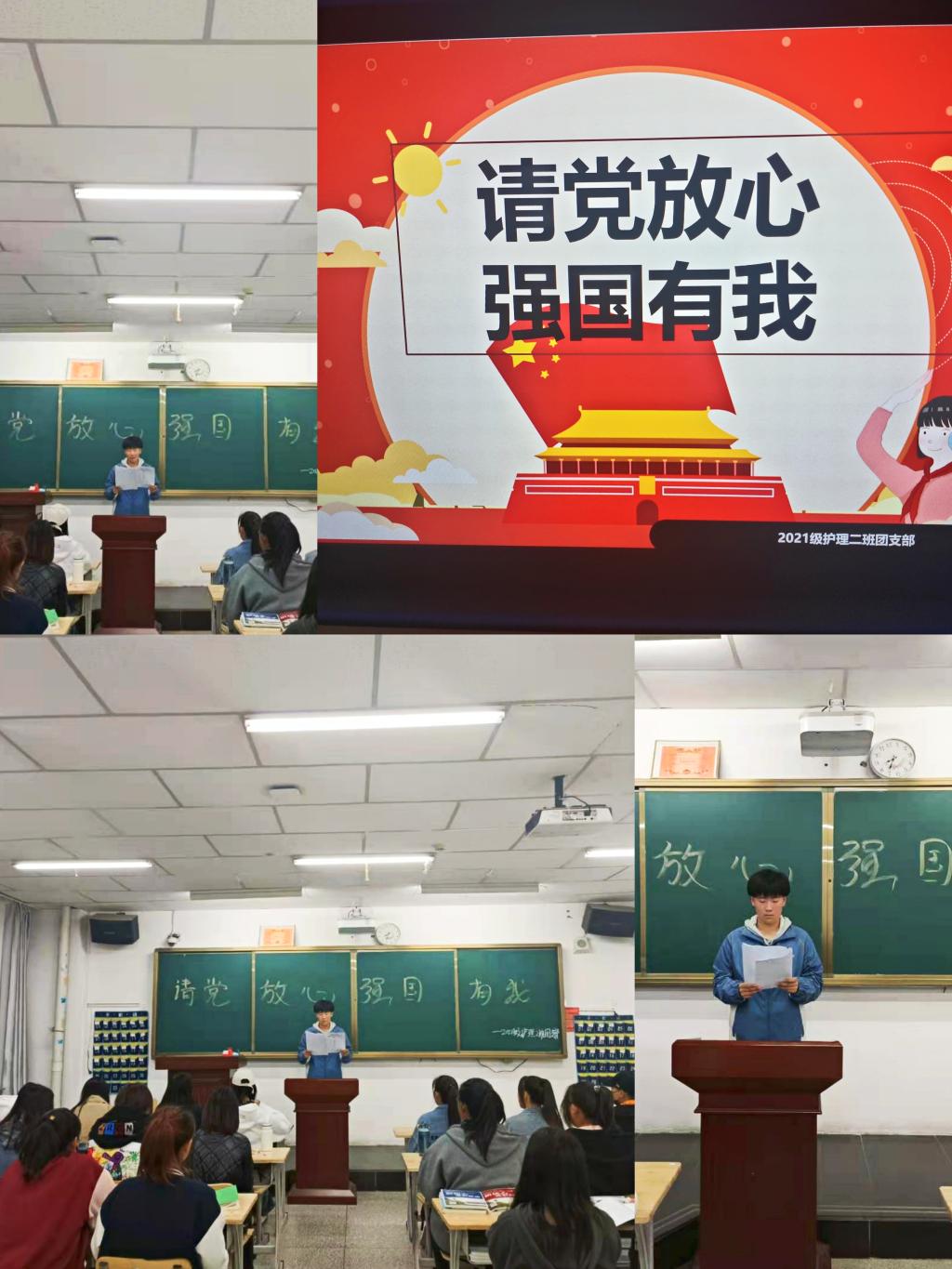 百年征程波澜壮阔,百年初心历久弥坚。为掀起学习宣传贯彻习近平总书记“七一”重要讲话精神热潮,切实加强对广大青年的思想政治引领,永远感党恩、听党话、跟党走。2021年10月7日,呼和浩特职业学院医药卫生系团总支组织各班团支部开展“请党放心,强国有我”主题团日活动。