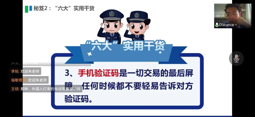 本次讲座中,朱警官充分剖析了网络贷款、网络刷单、杀猪盘类等电信诈骗案例,揭示了典型案例中常见欺诈手段和甄别方法,提醒大家务必保护好自己及家人的信息,做到不向陌生人透露自己及家人的身份证信息、存款、银行账号等个人信息,不轻易点击可疑链接和告知陌生人验证码等基本反诈操作。