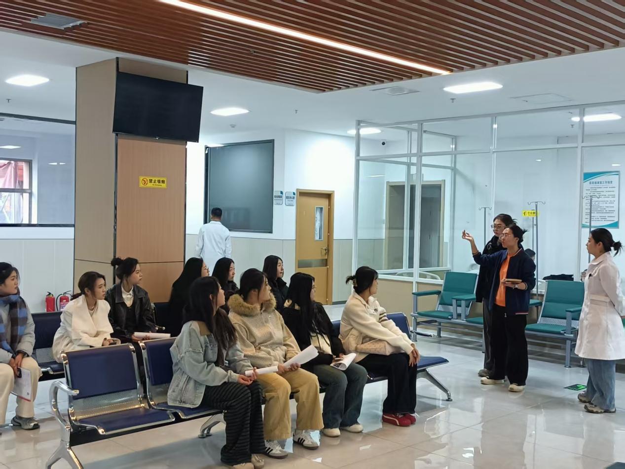 活动中,受到了医院负责人及医护团队的热情接待,他们带领学生先后参观了康复治疗区、老年护理区、健康评估中心等核心功能区域,详细介绍医院康养服务特色、科室运营模式、岗位工作流程,以及医护人员需具备的专业能力与职业素养。参观过程中,学生们积极提问,就专业学习重点、职业发展路径等问题与医护人员深入交流。