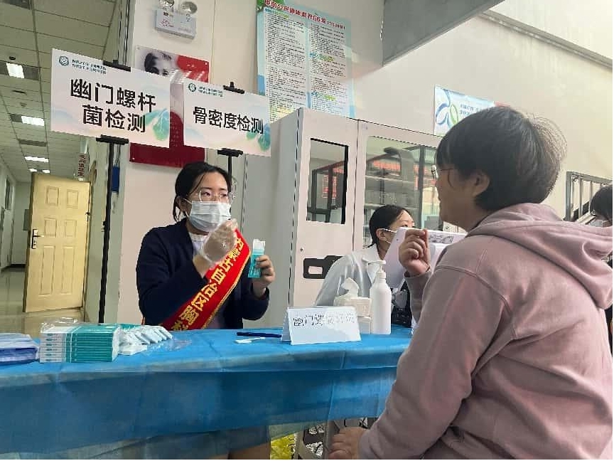 活动依托移动车载低剂量螺旋CT,为教职工及家属提供肺结核、肺结节免费筛查,同步开展血压、血糖、骨密度、心电图、幽门螺杆菌检测等综合体检,多学科专家现场提供健康咨询与指导。