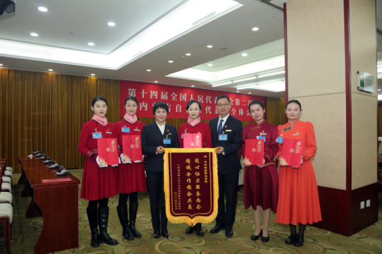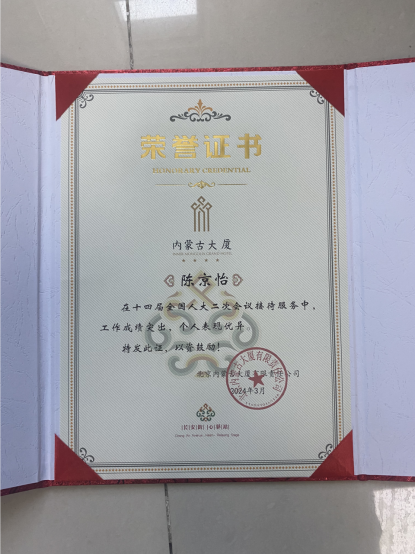 两会闭幕,北京内蒙古大厦领导对五名学生的工作表示肯定,并为她们颁发了荣誉证书。同时对呼和浩特职业学院和人文与旅游系的培养给予赞赏,并颁发锦旗。通过校企双方深入的合作协同育人,为学生提供了更大的展现自己的平台,使学生获益良多,为今后就业和发展奠定了基础,也为企业提供了助力,做到了同心协力服务两会,精诚合作校企共赢的效果。