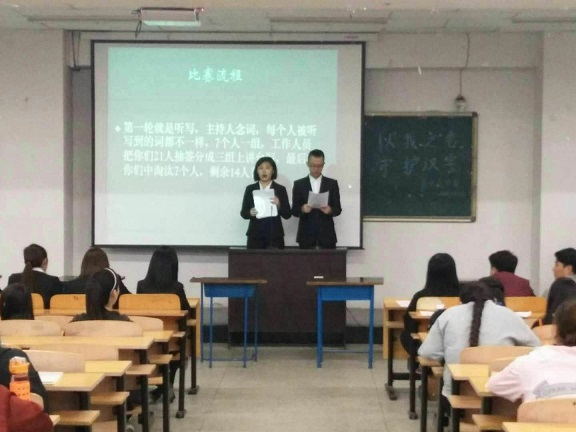 为丰富同学们的文化素养,唤醒信息时代我们日趋淡忘的汉字情结,人文与旅游学院云帆文学社于2018年4月12日晚在南教学楼201教室举办了“以我之名,守护汉字”大赛活动。参加本次活动的有云帆文学社社长杨聪聪,副社长云清、王彩霞、云清、马力军及其他团学干部。其中副社长和各部部长担任了此次比赛的评委。本次活动参赛选手要经过淘汰赛,晋级赛和决赛三轮比拼。赛前,同学们通过抽签形式确定了守护者与挑战者两种身份。在比赛中,选手们都充分展现出了自己的实力与风采,并使在场的同学们对中国汉字有了更深刻的认识和了解。
