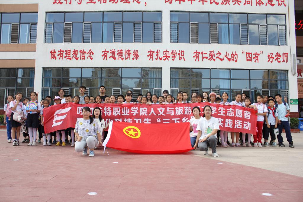 为深入学习贯彻党的二十大精神,落实习近平总书记关于青年工作的重要思想,加大民族、农村地区国家通用语言文字推广力度,铸牢中华民族共同体意识,助力乡村振兴战略,人文与旅游系青年志愿服务队于7月8日在呼和浩特市赛罕区敕勒川绿地小学腾飞路校区开展暑期“三下乡”社会实践活动。此次实践以“推广普通话,写好规范字”为主题。由我系赵惠书记、周云斌副主任、杨彩青老师指导进行。