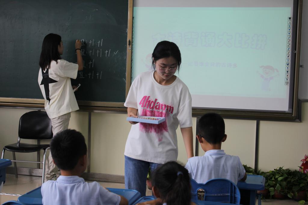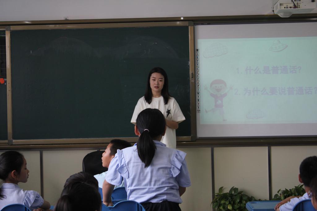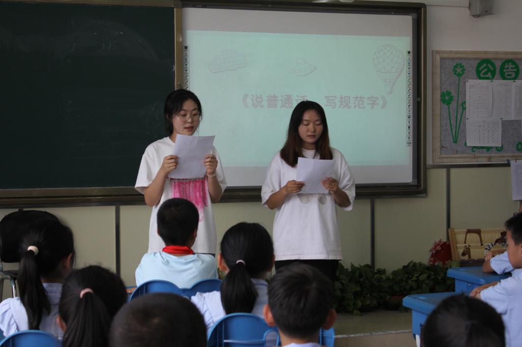 活动过程中,志愿者们通过小故事引导小朋友们进入主题,围绕“什么是普通话”“怎样说好普通话”进行讲解,通过绕口令小挑战、古诗背诵大比拼等环节将知识讲授和趣味游戏相结合,寓教于乐、寓学于趣,致力于将“说好普通话,写好规范字”的种子扎根在每一位小朋友的心中。