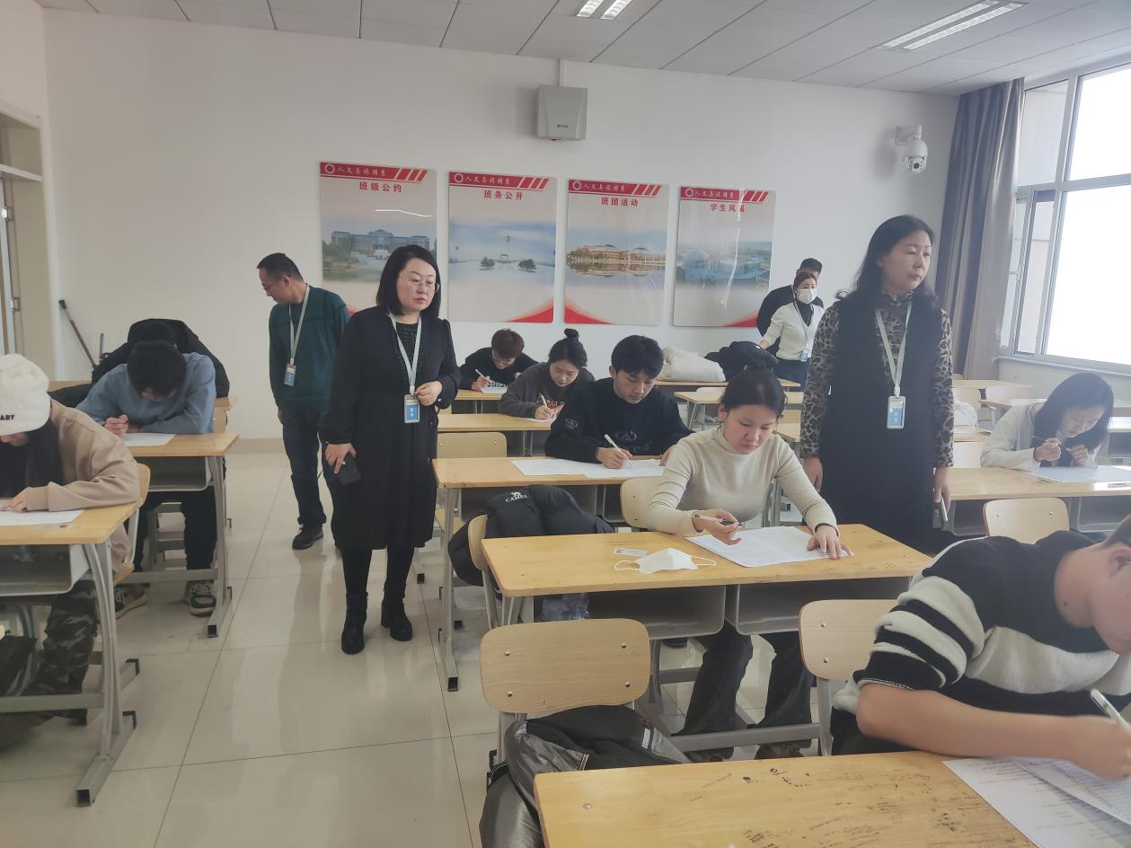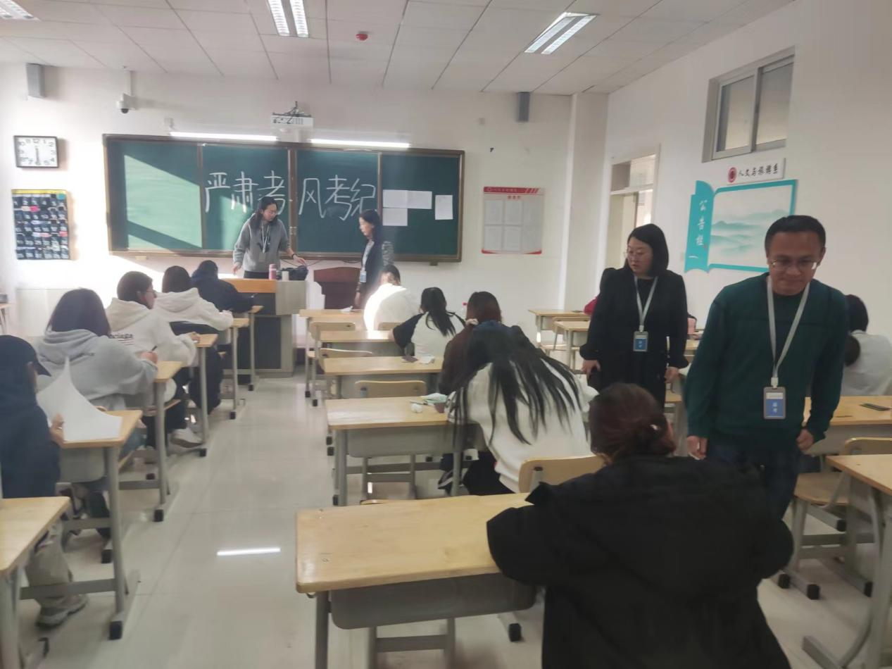 教务科提前半个月对考试流程和安排进行了详细的安排部署,考试中监考教师都以高度责任心投入到监考工作中,按时到岗,严把考风考纪,工作细致严谨,认真履行监考职责。在考试期间,赵惠书记、李爱萍副主任、周云斌副主任、麻敏副科长严格按照考务要求对我系各个考场进行了认真细致的巡视,并将发现的问题及时反馈纠正,监督保证本次期末考试的顺利进行。