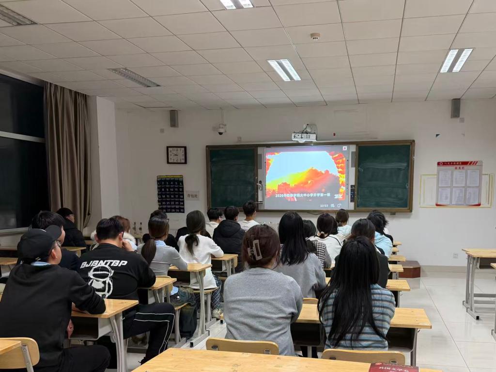 本次课程通过长城这一中华民族精神象征,生动诠释了各民族共同开拓辽阔疆域、共同书写悠久历史、共同创造灿烂文化的深刻内涵,为新时代立德树人提供了鲜活教材。9日上午9时,我部教师代表在410教室集中观看学习,为后续开展学生思想政治教育工作及课程思政储备理论素养与实践思路。课后,教师代表在418会议室开展了开学第一课专题交流会。在会上,老师们围绕“传承长城精神、厚植家国情怀”为主题展开深入交流。大家纷纷发言,老师们结合教学和工作实际,就如何将课程精神融入日常思政教育、课程思政建设等方面提出具体举措,进一步明确了“培养让党放心、爱国奉献、担当民族复兴重任的时代新人”的育人目标。此外,我部还组织大一学生于9日晚自习在各班教室集中观看,将收心教育与纪律教育融入日常学习场景;大二学生则以宿舍为单位,利用课余时间自主观看,通过朋辈交流深化对课程内容的理解。