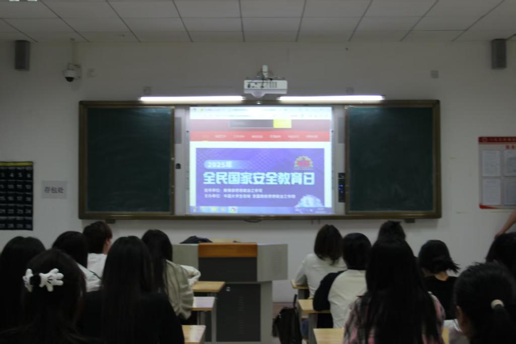 本次活动以“全民国家安全教育走深走实十周年”为主题,旨在阐述国家安全的重要性,号召全体学生从点滴做起守护国家安全。首先,我系组织学生在线观看了“千万师生同上一堂国家安全教育课”为主题的公开课,生动的视频资料向同学们详细讲解了国家安全的基本内容和设立全民国家安全教育日的现实意义。然后,各班级学生在敏学楼教室观看了高校国家安全网络视频公开课,以文化安全、社会安全、网络安全等内容为切入点,使学生牢固树立了国家安全意识。最后,学生们在教室还参与了全国大学生国家安全知识答题活动,普及了同学们的国家安全知识,引导学生更加深入学习践行国家安全观,营造出国家安全人人参与、人人有责的浓厚氛围。