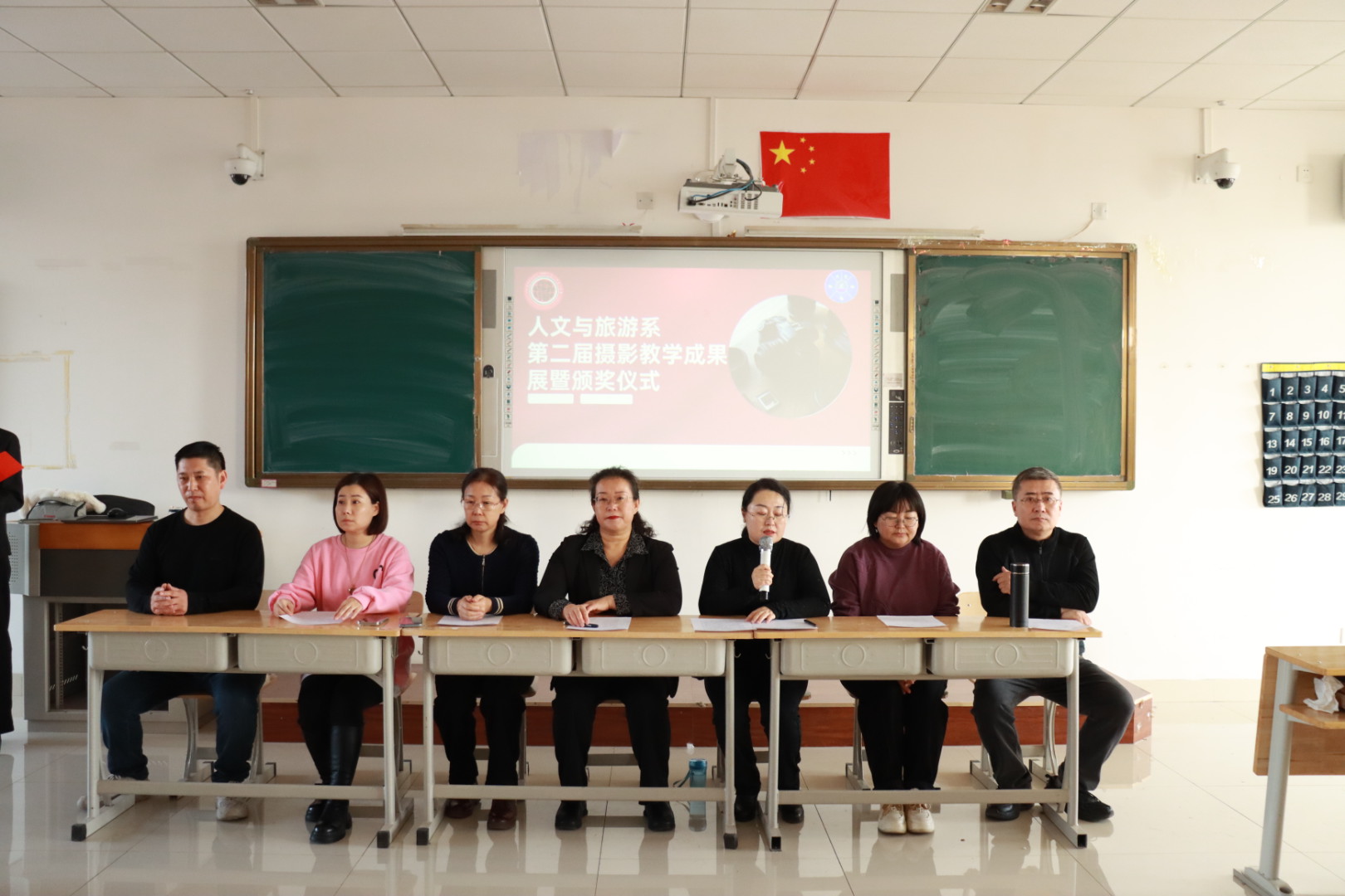 2024年12月11日上午9点在敏学楼429教室,人文与旅游系举行了第二届摄影教学成果展暨颁奖仪式。此次活动旨在展示学生在摄影领域的学习成果,表彰优秀作品,并激励学生继续在摄影艺术道路上探索和创新。人文与旅游系党总支书记倪晓箐、系主任赵惠、副主任李爱萍以及教务科科长麻敏和就业指导科科长宛磊和新闻采编与制作专业教师代表出席了本次会议,23级新闻采编与制作专业的全体学生参加了会议。