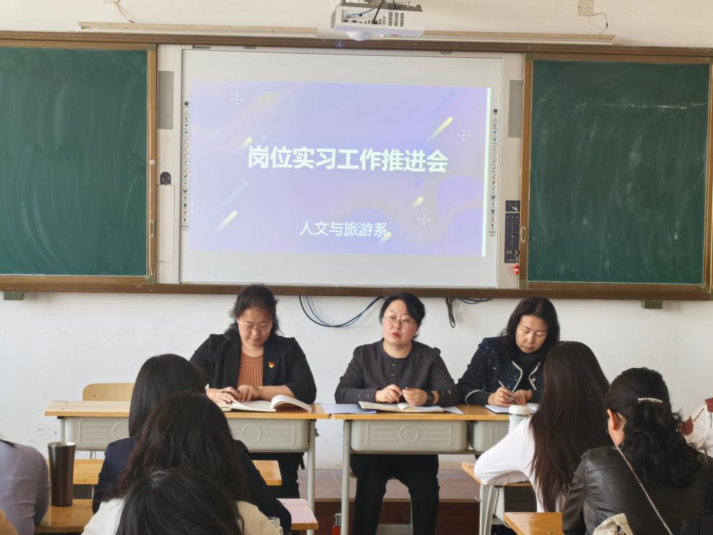 2025年4月22日下午,人文与旅游系于敏学楼410教室召开岗位实习推进会。全体教职工参加会议。