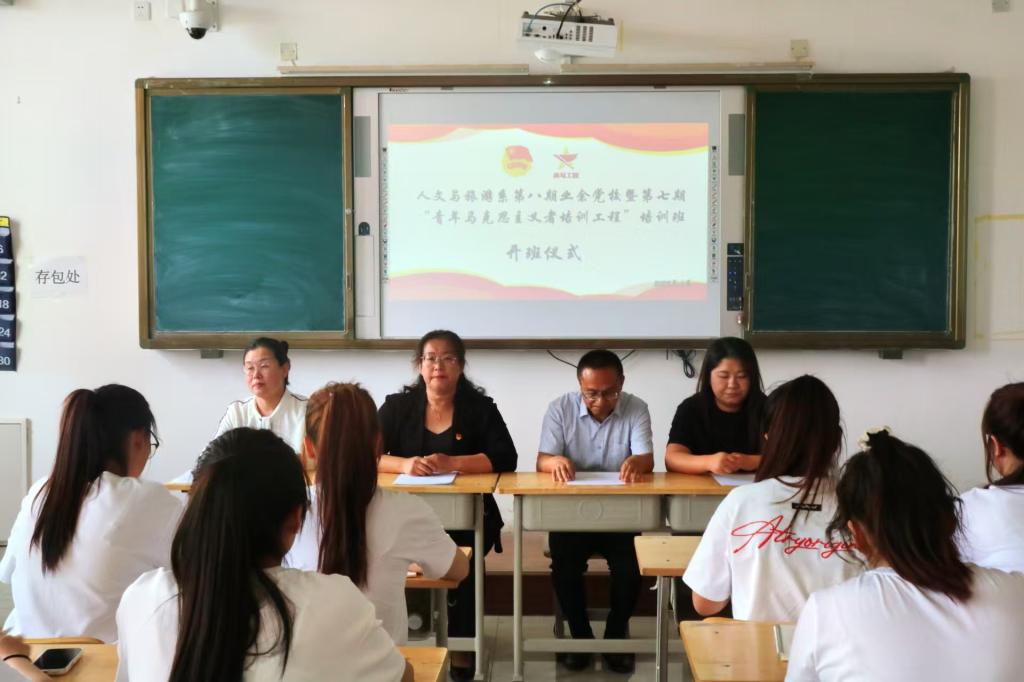 为深入学习贯彻习近平新时代中国特色社会主义思想,全面贯彻落实党的二十大精神,深刻把握习近平总书记关于青年工作的重要思想的精髓要义,着力培养政治坚定、德才兼备、作风过硬的新时代青年马克思主义者,推动马克思主义理论在青年中广泛传播与深入实践,人文与旅游系于6月11日开展第八期业余党校暨第七期“青年马克思主义者培训工程”培训班开班仪式,人文与旅游系党总支书记倪晓箐、副主任周云斌、团总支书记杨彩青、马列部教师王红梅以及全体入党积极分子出席仪式,共同开启深化理论学习、锤炼党性修养的新征程。