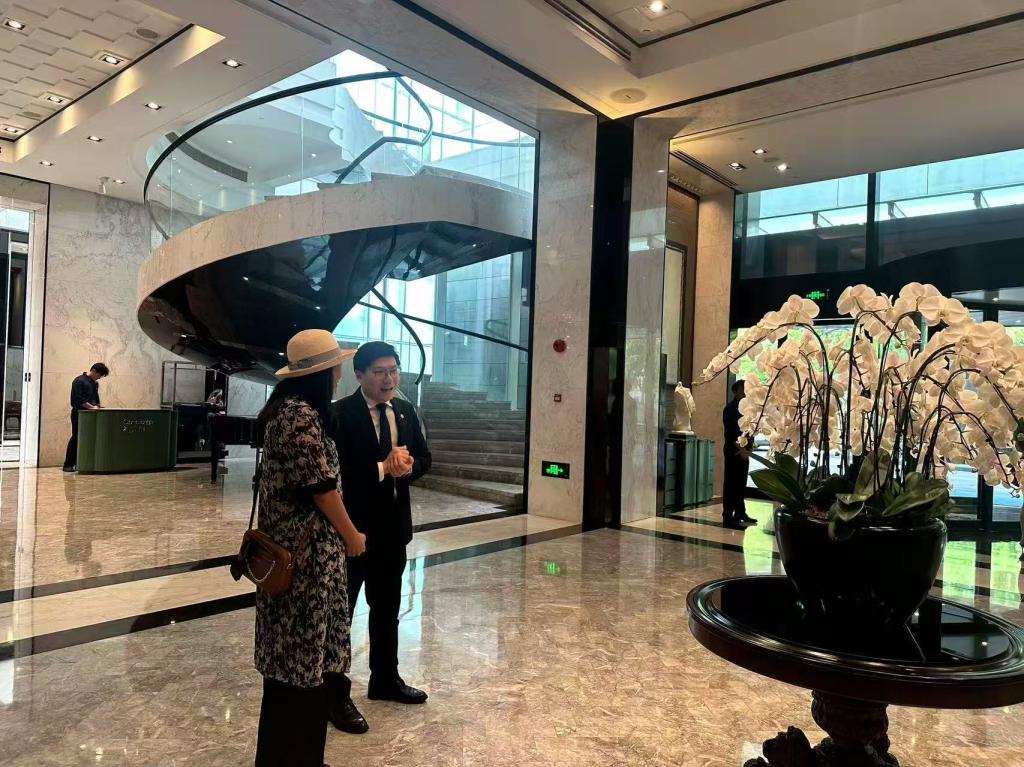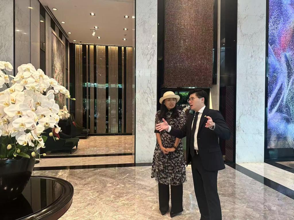随后,继红主任前往上海二十一世纪酒店有限公司进行实地考察。 她重点参观了酒店的主要运营区域,详细了解了酒店为实习生提供的具体岗位设置、工作职责、技能要求以及相应的薪酬福利待遇体系,并与企业相关负责人就实习生管理、培养模式等进行了初步沟通。