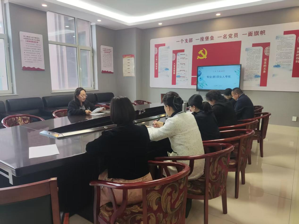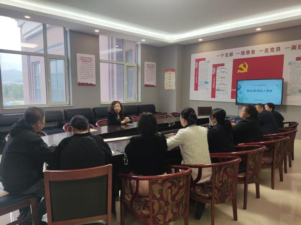 会前成立了由领导班子成员、教务科科长和教研室主任组成的考核组。五位专业(群)带头人对照学院相关考核标准提交了书面说明资料。