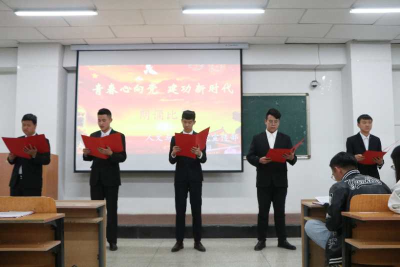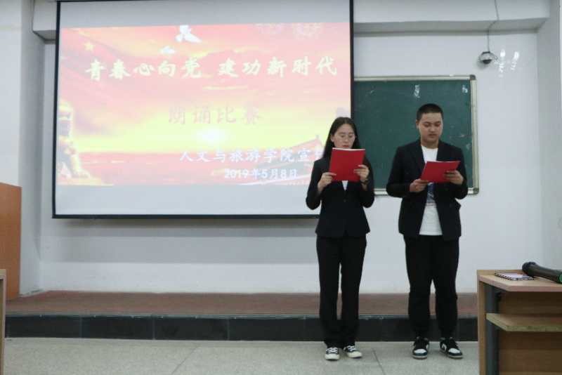 为庆祝新中国成立70周年和纪念五四运动100周年,引导青年学生勇作时代先锋,激发大学生奋发读书、传承经典,人文与旅游学院于2019年5月8日晚8时在南教学楼301教室开展了“青春心向党,建功新时代”主题朗诵比赛。本次比赛以班级为单位参赛,17、18级学生代表观看此次比赛。
