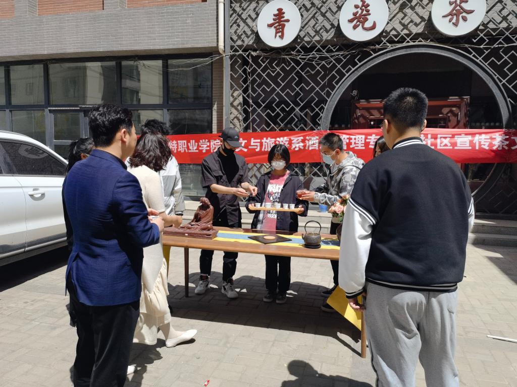 为大力弘扬劳动光荣、技能宝贵、创造伟大的时代风尚,今年职业教育活动周以“技能:让生活更美好”为主题,重点突出“技能服务美好生活”。人文与旅游系联合校企合作实习基地青瓷茶露主题茶楼开展茶文化进社区宣传活动。
