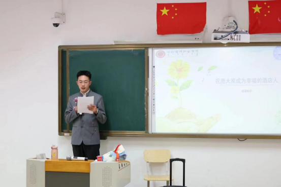 9月18日晚,首先进行了新生专业介绍会。酒店管理教研室主任李冉首先对2024级新生的到来表示欢迎,并从专业概况、教师团队、培养目标等方面对专业进行了介绍;然后专业带头人谢丽梅老师以数据说专业,从学习、大赛、就业等方面进行了全面介绍,谢丽梅老师把酒店职业人的工匠精神传递到同学们的心里,并希望经过三年的学习,成为一名幸福的酒店人;接下来由全国技能大赛参赛选手崔建、杨晨、吴若萁分别就自己参赛的成长、收获与感悟对新生进行了分享;最后由周云斌副主任总结发言。