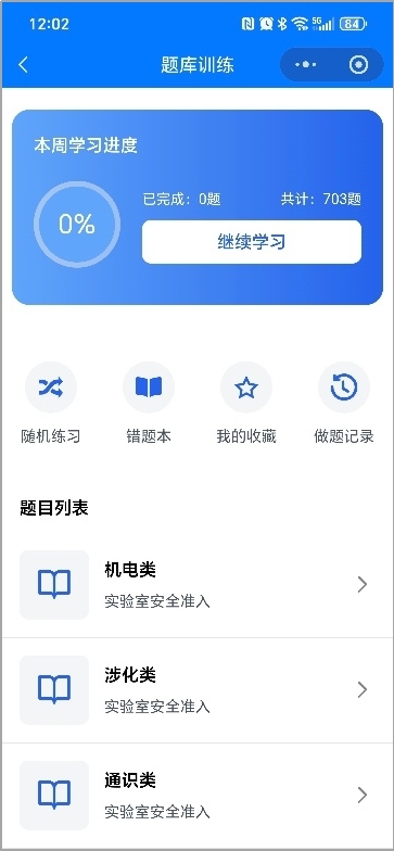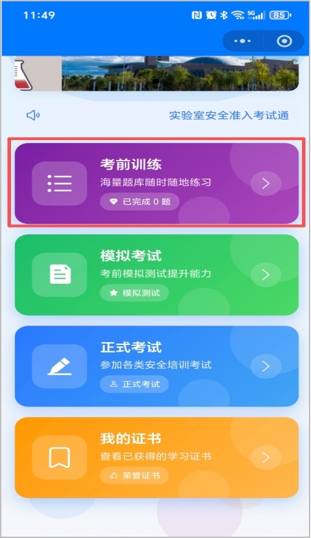 11月14日-11月21日开放系统题库训练功能,学生可登陆系统在“考前训练”功能中进行题库训练。