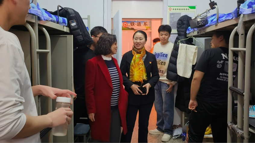 为确保新学期各项工作顺利开展,3月2日,铁道系党总支书记崔娜、主任张晓英、副主任王建强、学团科科长王晓磊带领学团科全体专兼职辅导员深入班级和宿舍,全面检查学生返校情况并开展开学准备工作。