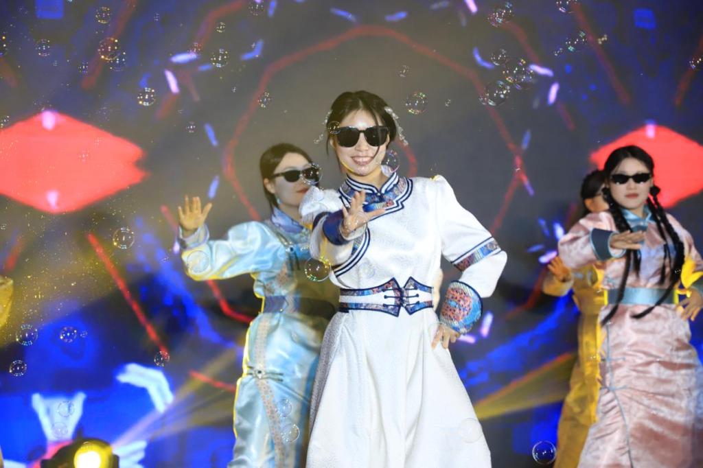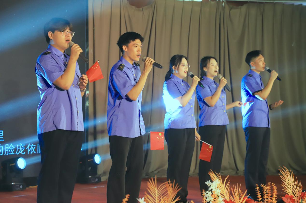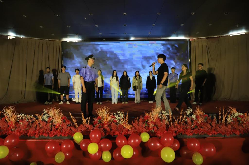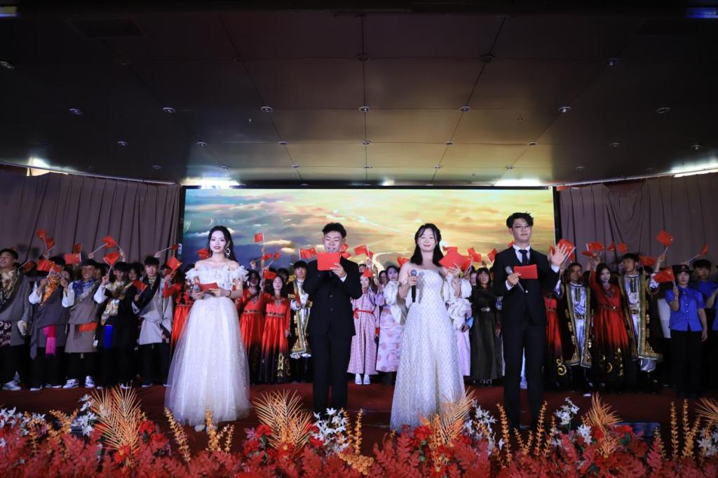 文艺汇演环节,王喜鑫、张琳欣等5人带来国铁集团推广歌曲《青春铁道》,以饱满的热情和富有感染力的歌声,唱出了铁道学子对青春的热爱和对未来的憧憬。由维吾尔族、藏族和蒙古族同学带来《石榴籽之家——民族团结一家亲》精彩纷呈,赢得观众阵阵掌声。当所有表演人员齐聚舞台,共同唱响《我爱你中国》时,激昂的歌声瞬间点燃了观众的爱国热情,同学们不约而同地跟着节奏轻声哼唱,脸上洋溢着自豪与感动,这场青春盛会圆满落下帷幕。