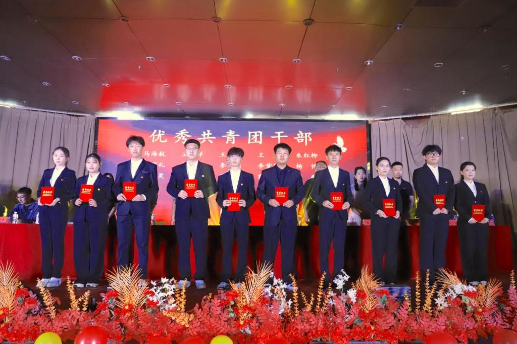 率先进行的是五四表彰大会,一段精彩的五四主题宣传片在大屏幕上生动展现,瞬间将现场燃起浓烈的青春气息。主持人随即登场,以热情洋溢的开场白迅速点燃了晚会的氛围。在场师生全体起立,共同奏唱激昂的国歌。随后,铁道系学团科科长王晓磊宣读表彰决定,铁道系对本年度6个先进集体、81名三好学生、39名优秀共青团员、15名优秀共青团干部、52名优秀青年志愿者以及在铁道系其他学习和工作中的先进榜样进行了表彰。活动现场举行颁奖仪式并合影留念,定格下这光荣瞬间,这一时刻不仅是对获奖者过去努力和成就的肯定,更是激励全体师生向优秀看齐,追求卓越、砥砺前行。最后,四位优秀获奖代表发言,真诚分享自己的成长经历和感悟,为同学们树立了先进榜样。